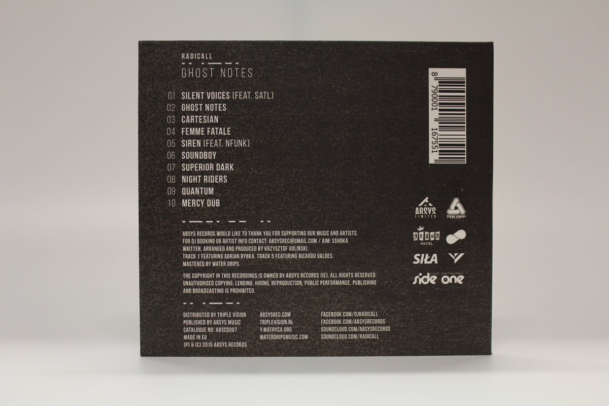 Absys Records kicks off 2015 with new realease from our long time companion, Radicall. "Ghost Notes" is his second studio album, first since 2010's well acclaimed "Emotive" that our most diehard followers surely remember. Preserving his significant style along with contributions from Satl and Nfunk, album is comprised of ten rolling, uptempo tracks embracing different frames and atmospheres. Mastered in Poland by Water Drips. Coming with unique artwork from Yak, "Ghost Notes" is going to be released in March, with promotional vid to "Silent Voices" by My Home Production coming straightaway!